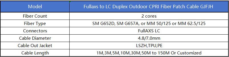 FTTA Fullaxs to LC Duplex Outdoor CPRI Fiber Patch Cord Multimode GJFJH LSZH